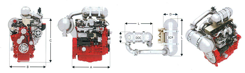 Newly-designed, water-cooled 4-cylinder inline engine with turbocharging and cooled, external exhaust gas recirculation and optionally with and without charge air cooling.